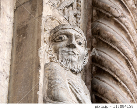 Verona dome cathedral church exterior sculptures detail. Romanesque sculpture attributed to the workshop of Veronese sculptor Brioloto