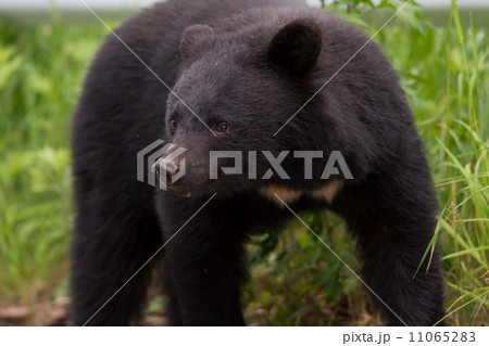 道路を悠然と横切るエゾヒグマ ヒグマ 羆