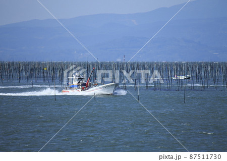 有明海を走り回る漁船、