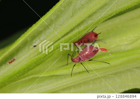 生き物 昆虫 セイタカアワダチソウヒゲナガアブラムシ、出産中。卵胎生単為生殖で爆発的に増えます