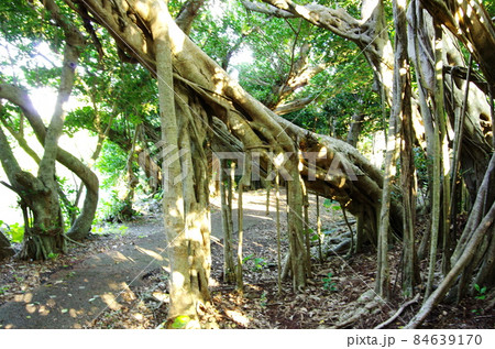 奄美市名瀬の有良集落のガジュマルのトンネル