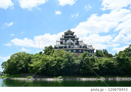 岡山城天守と旭川の夏空模様