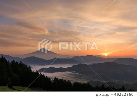 静岡県 朝霧ジャンボリーオートキャンプ場からの朝日 3月