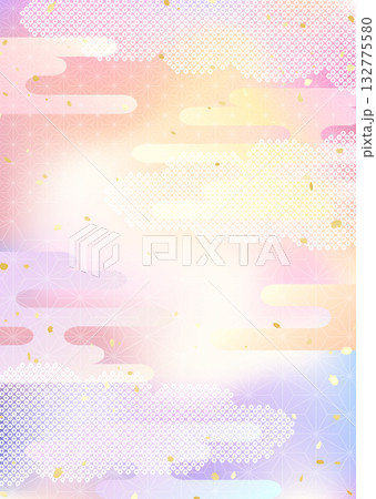空のグラデーションと日本の伝統的な模様を組み合わせた和風背景イラスト