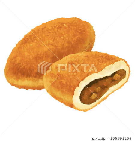 カレーパン。パン素材。手書き風、スケッチ風のセット。