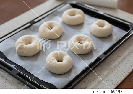 おうちでパン作り 二次発酵前に成型したプレーンベーグル