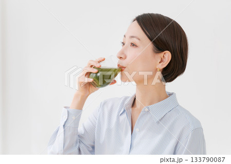 青汁を飲むミドル女性(健康・ヘルスケア)