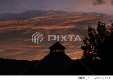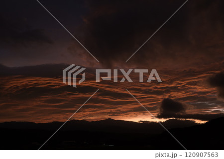 北杜市白州町、朝焼け雲浮かぶ夜明け