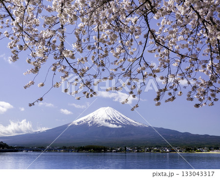 Fuji mountain and cherry blossoms Sakura in spring at Kawaguchiko, Japan.