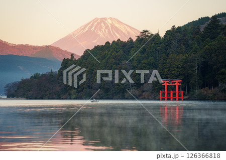 Mount Fuji and Torii Gate at Lake Ashi, Hakone, Japan