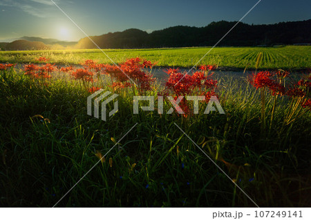 朝陽に輝く彼岸花