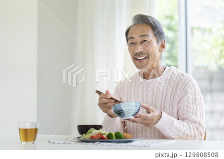 ごはんを食べるシニア男性