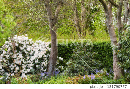 Colorful flowers and plants growing and blooming in a botanical garden. Beautiful variety of greenery in a backyard in summer. Scenic landscaping of trees and bushes in a public nature environment