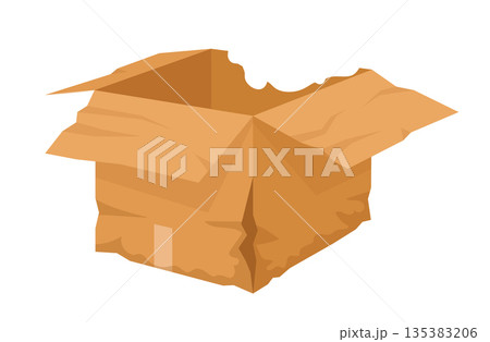Crumpled cardboard box. Broken and wet carton shipping container, damaged delivery box flat vector illustration. Torn box on white background