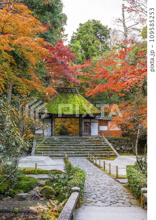 秋の京都 紅葉に包まれた天授庵の白壁