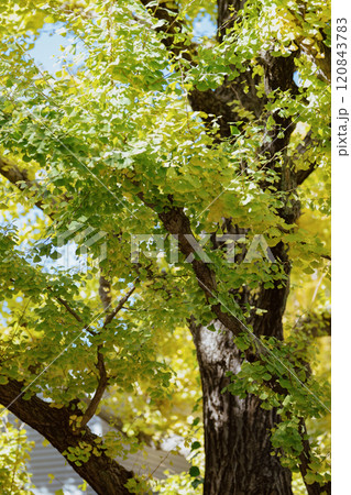 緑と黄の銀杏の木陰