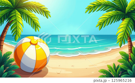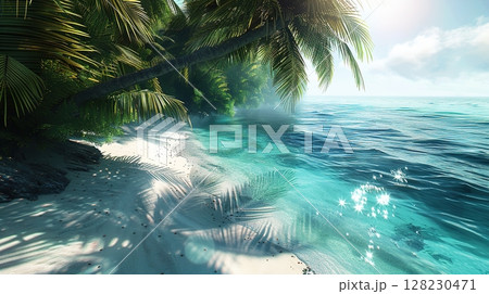 Serene tropical beach with palm trees and crystal clear turquoise water