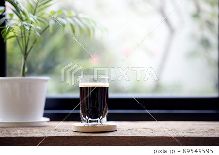 Small cup of coffee and notebooks and Peperomia Hope plant