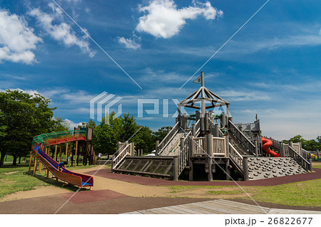 越後丘陵公園 楽しげなアスレチック 夏晴れの青空 新潟県長岡市