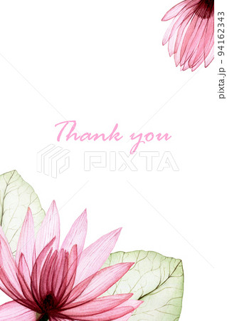 watercolor frame with transparent lotus flowers. transparent pink flowers and lotus leaves isolated on white background. design for wedding, congratulations, invitations. inscription thank you