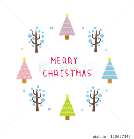 クリスマスのフレーム背景 クリスマスツリーと雪の結晶