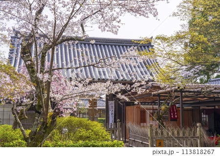 春の京都 二尊院 桜と総門