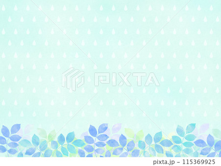 水彩タッチの木の葉と雨のフレーム 梅雨