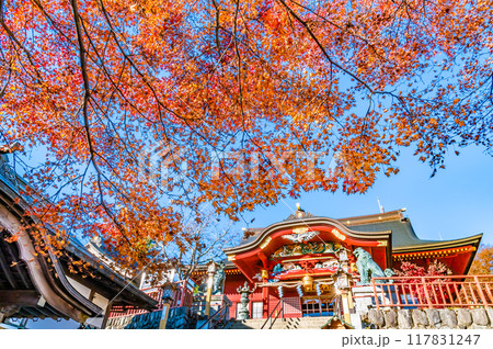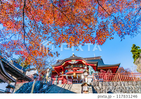 東京 紅葉に染まる武蔵御嶽神社 拝殿