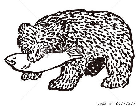 鮭を口にくわえた木彫り熊 白背景