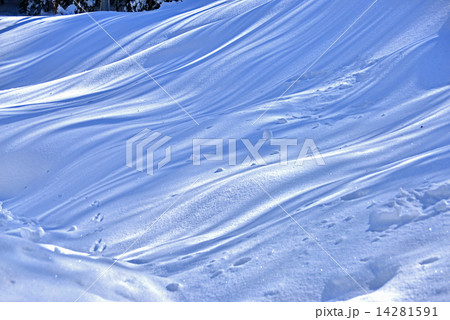 冬景色、雪面模様、木影
