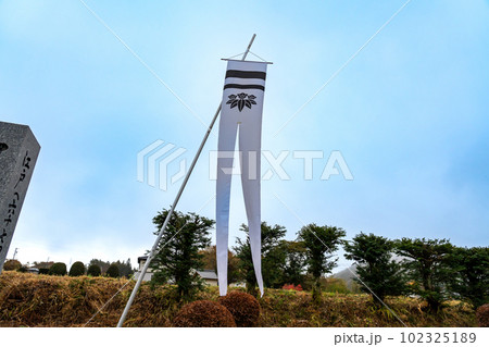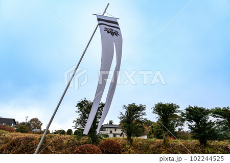 長野県木曽町 道の駅日義木曽駒高原にある木曽義仲旗揚げの地のイメージの旗