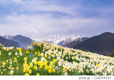 水仙と中央アルプス