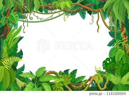 Tropical liana frame of jungle forest ivy branches or creeper plant vine, cartoon vector background. Tropical liana frame or rainforest jungle bindweed tree borders or hedera vine and monstera leaves