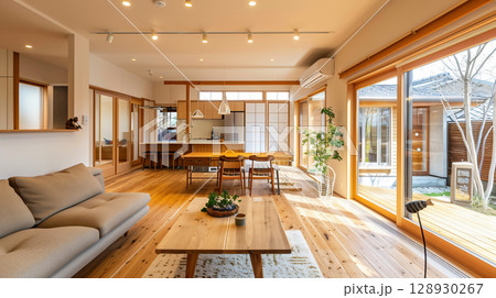 木の温もりを感じる明るくナチュラルなリビングルーム