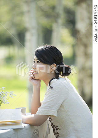 新緑と若い女性