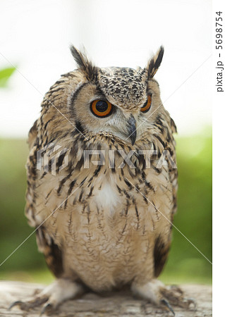 森に佇むミミズク ふくろう 猛禽類 ベンガルワシミミズク 雛