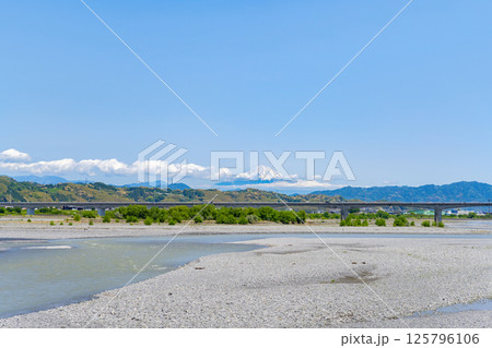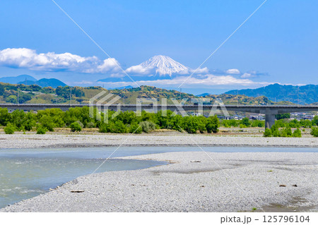 静岡県島田市 蓬莱橋から見た景色(富士山)
