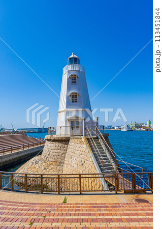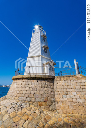 大阪府堺市 青空に映える木製の旧堺燈台