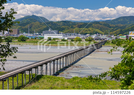 大井川に架かる 世界一長い木造歩道橋 蓬莱橋