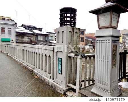 飛騨高山 宮川に架かる戎橋の欄干に銘板が見える風景 岐阜県高山市