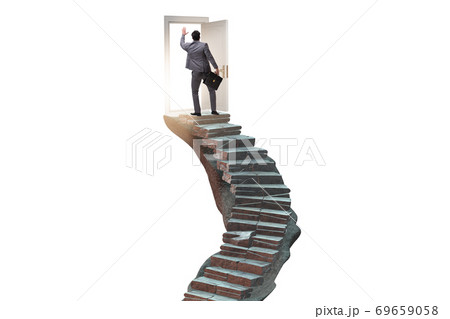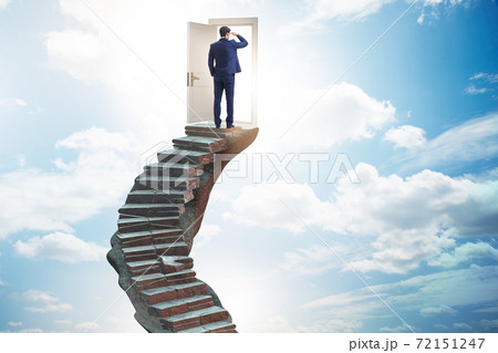 Concept of career ladder and door with businessman