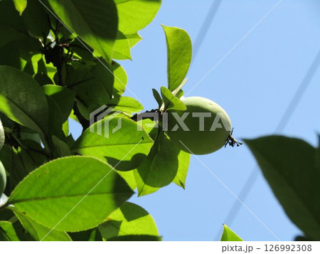 大きくなったカリンの実(夏、八月)