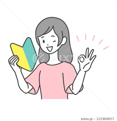 イラスト素材:初心者マークを持つ女性 グッドポーズ
