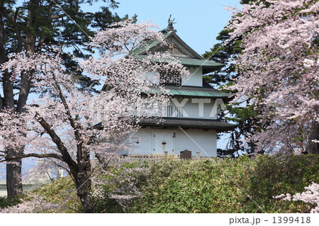 弘前城美しい枝垂れ桜と未申櫓 青森県