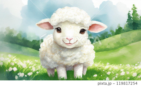 仲間と一緒でニコニコする羊の妖精のイラスト素材