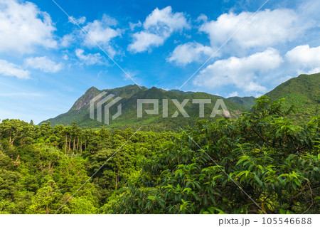 真夏の青空と深緑 世界自然遺産モッチョム岳 屋久島