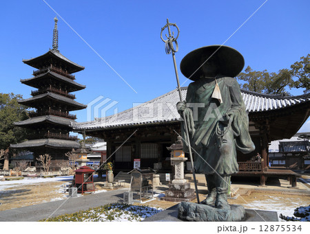 四国霊場第70番札所「本山寺」雪の五重塔と大師像