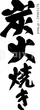 筆文字素材の手書きの【本格 炭火焼】墨で書いた横書きの炭火焼きのイラスト
