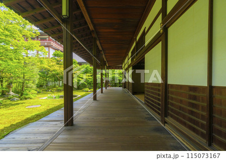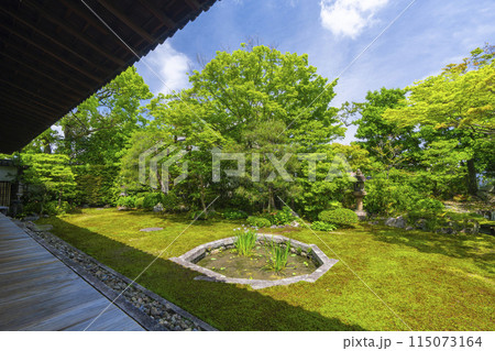 新緑の京都 本法寺 渡り廊下から見える巴の庭