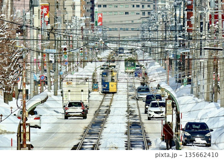 札幌、冬の市電通り